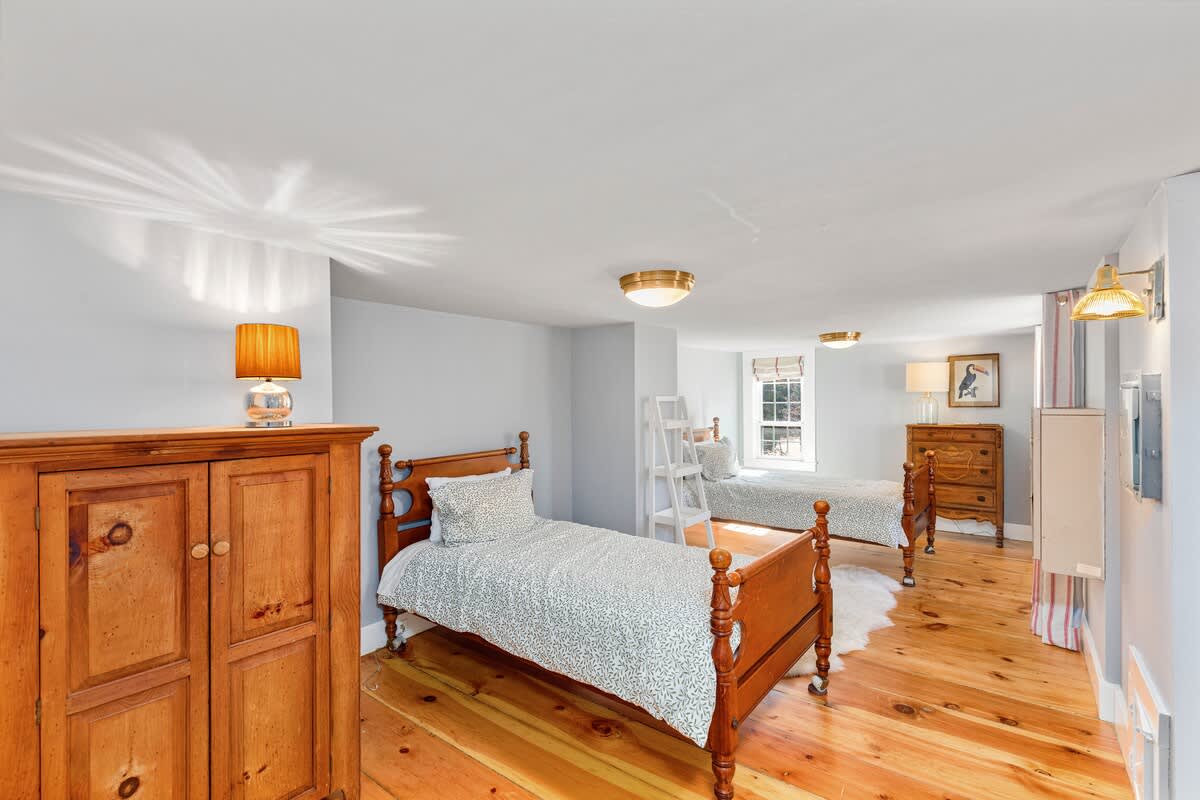 Step back in time while enjoying all the modern luxuries of today at Three Sisters, a beautifully restored estate in the heart of Yarmouth Port. Built in sections between 1732 and 1743, this spacious 6-bedroom main house with a separate 2-bedroom guest cottage is bursting with character, marrying beautiful antique charm with contemporary convenience. Once part of a trio of homes constructed by a farmer for his three daughters, this historic property is deeply woven into the fabric of Cape Cod’s past. With 3,500 square feet of living space across two dwellings, this home comfortably sleeps 16 guests, making it ideal for large families, reunions, or a Cape Cod getaway with friends. With multiple gathering spaces, there’s room for both lively conversation and quiet moments of retreat.