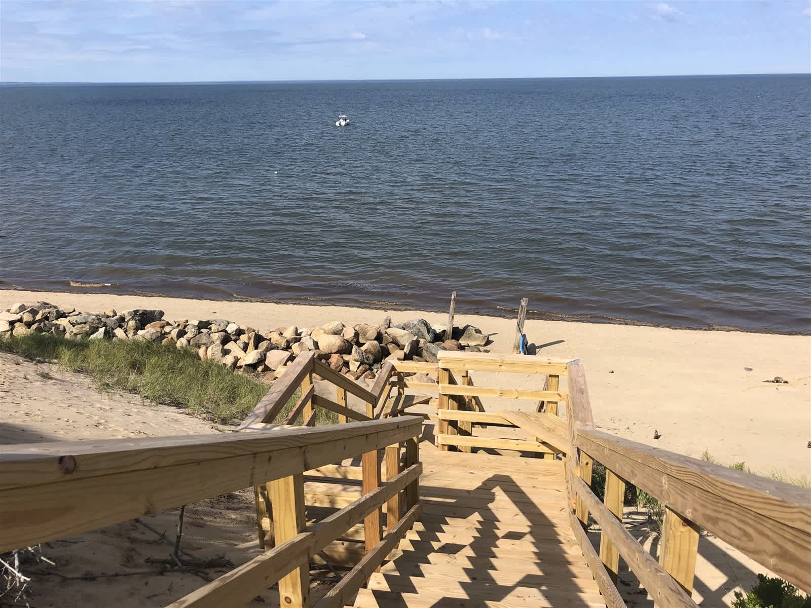 Beautiful newly furnished and completely gut renovated 4 bedroom, 4.5 bath on the bayside in Eastham. Everything in the house is brand new! 2 minute walk to the beach and a gorgeous new saltwater pool! Well-behaved dogs are welcome! Ideal private location just north of Campground Beach and about 1.5 miles from Rt. 6. No highway noise - just the peaceful sounds of the bay here! Points of interest such as National Seashore, Coast Guard Beach, Sam's Deli and more are approximately 10 minutes away by car. The Cape Cod Rail Trail is about 2 miles away for exploring the Outer Cape on bikes!