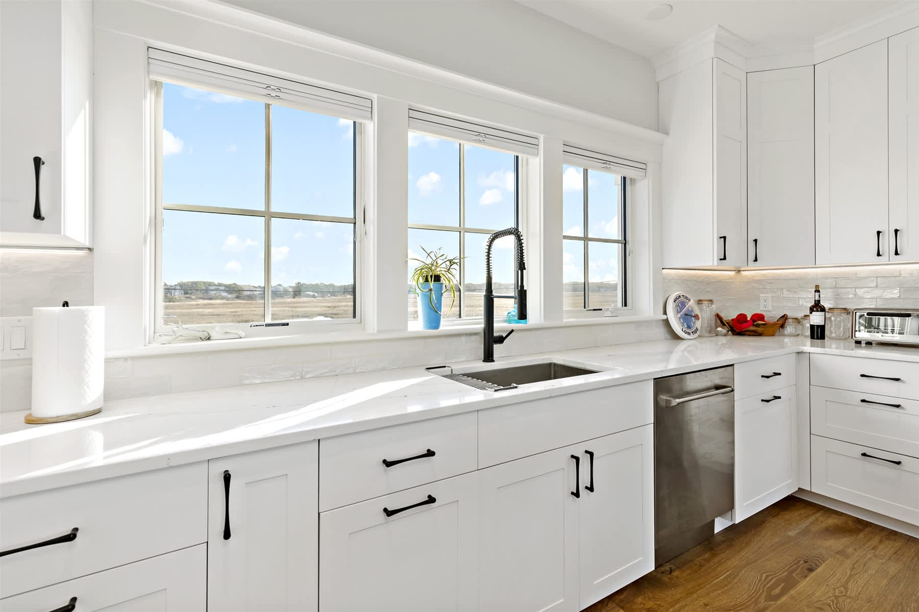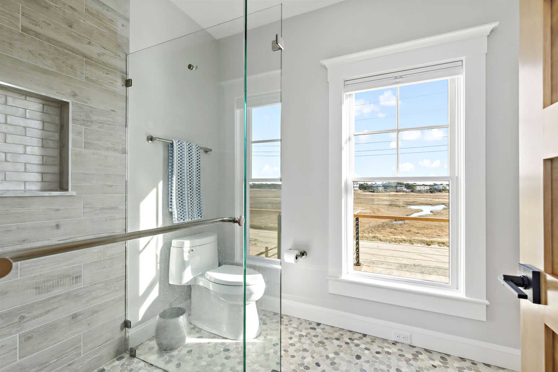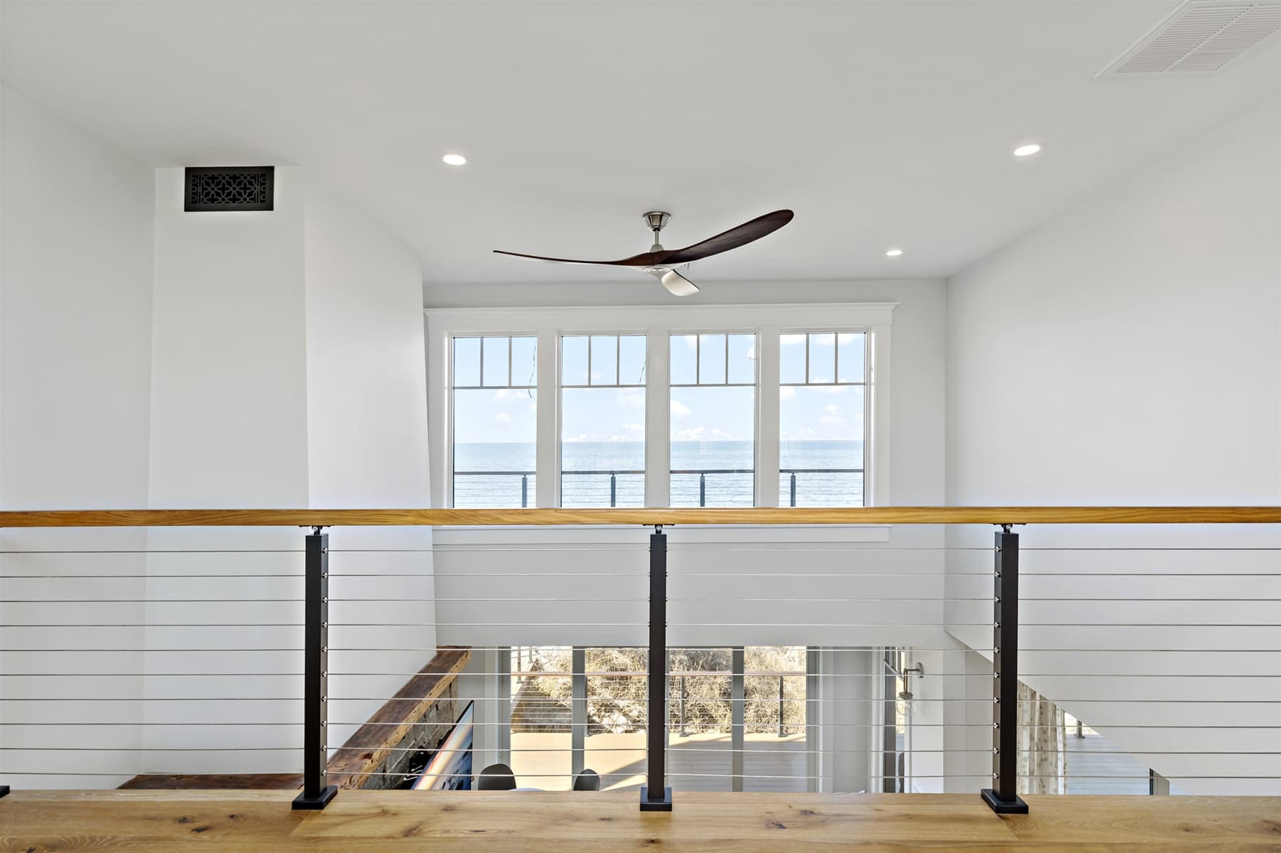 As you step inside, you discover a thoughtfully designed open concept living room, dining room, and kitchen. Windows flood each space with natural light, and offer an amazing vantage point for watching spectacular bayside sunsets. The living room features soaring ceilings, a charming stone fireplace, and a wall mounted smart TV for movie night. The eat in kitchen is bright and inviting, with top of the line stainless steel appliances and an abundance of amenities that cater to the discerning home chef. The dining room connects these spaces, and offers access to the back deck that runs the length of the home on both levels. The striking, oppulent nature of the property continues in each of it's well designed 3 bedrooms and 3.5 bathrooms.