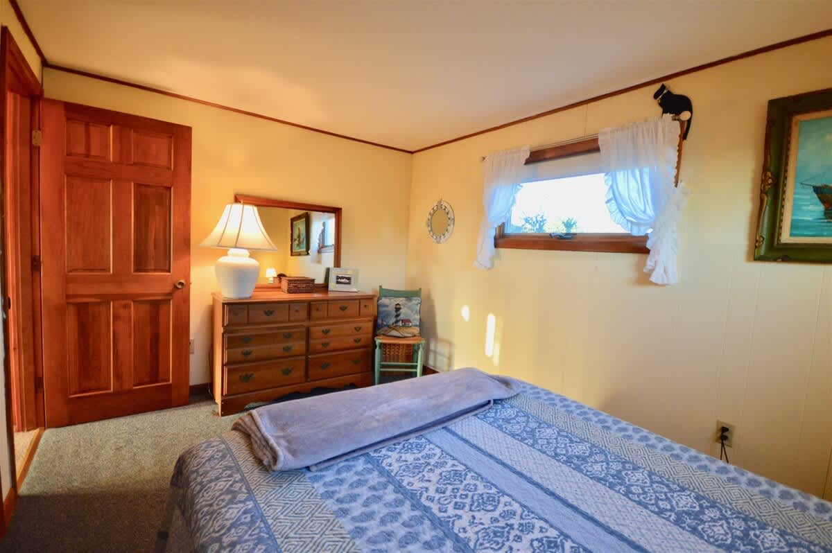 The home has an "upside down" layout, with the bedrooms on the first floor and living on the second. Open the windows and enjoy the bay breezes! There are two full bathrooms in the house, plus a washer and dryer. The upstairs living area is large and open with vaulted ceilings and sliders onto the upper deck with gas grill and outdoor seating. The western facing views over the bay make for stunning sunsets, and there are gorgeous uninterrupted views to the northwest across the natural Truro seaside landscape. Enjoy the scenery out on the large upper deck with a glass of wine and some fresh caught fish on the grill. Fish off the jetty or right on the beach - can't get any fresher! Fishing licenses are available online here.