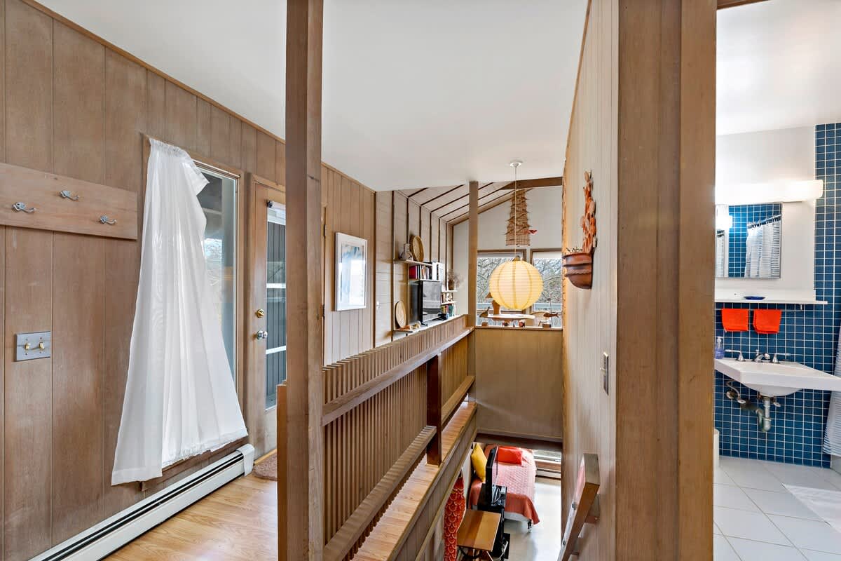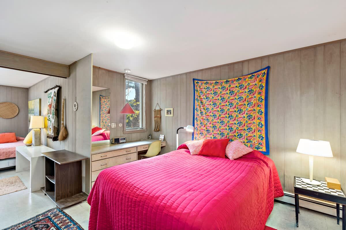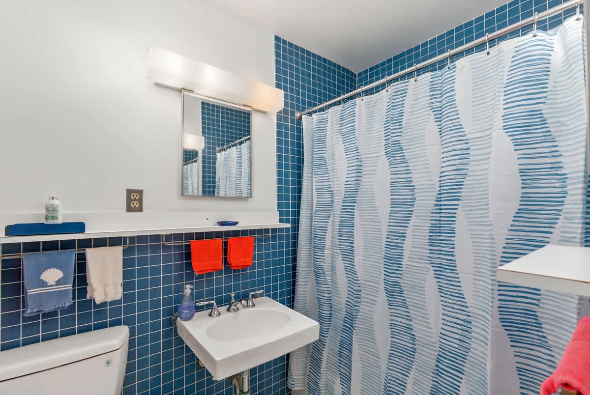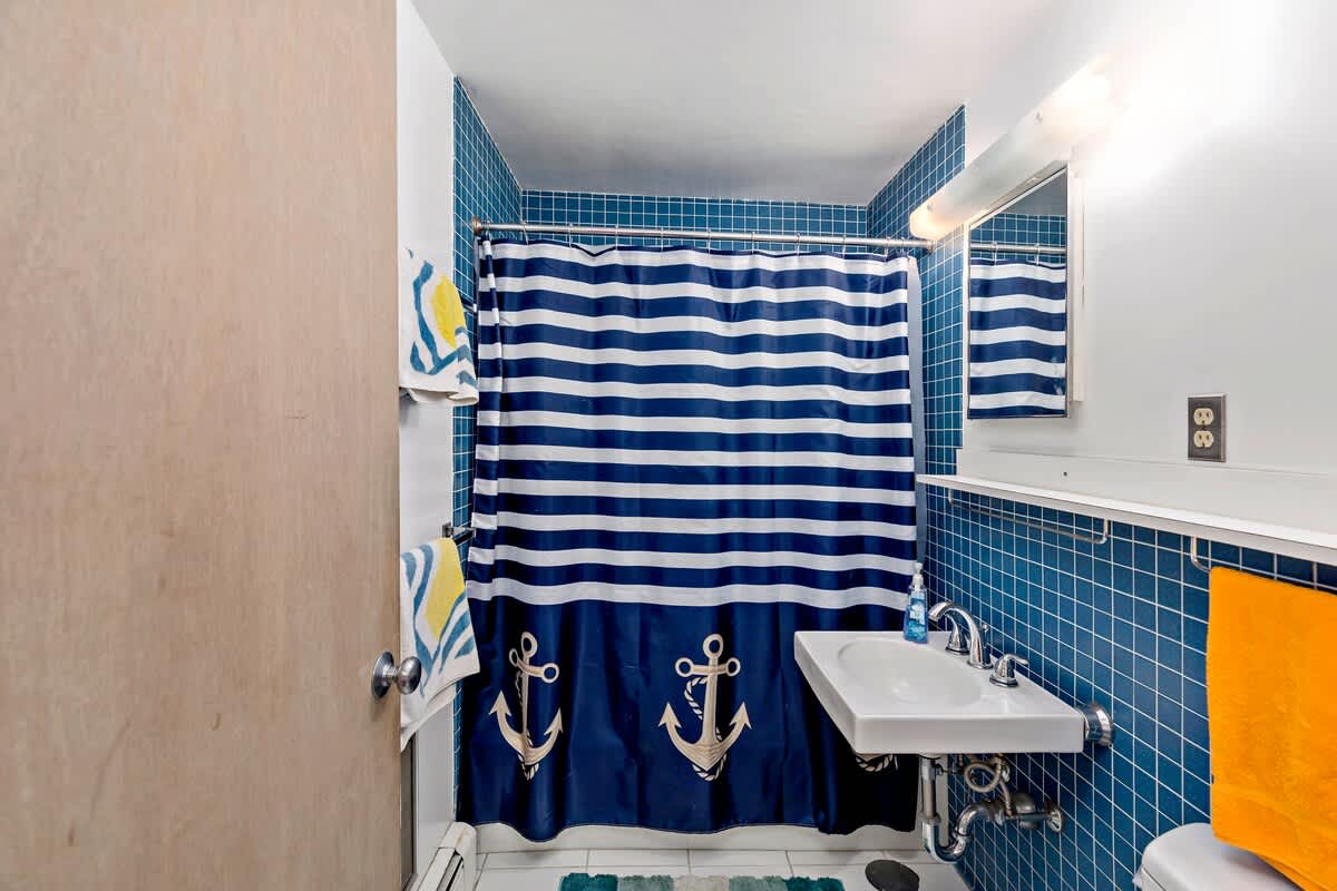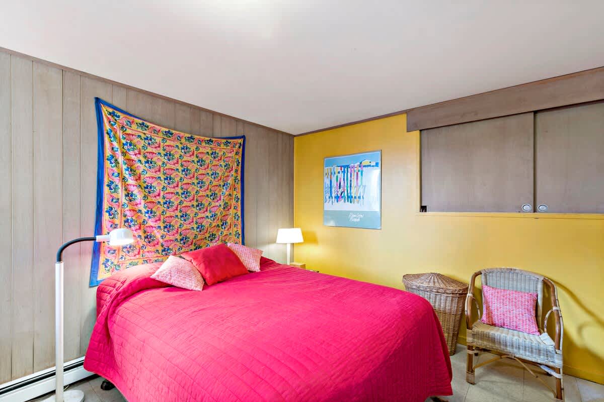 When you pull up the driveway and around to the back of the house, you’ll be greeted by a gorgeous new back deck. It’s the perfect spot to soak up the sunshine, surrounded by whispering pitch pines. Inside, the charming kitchen is fully stocked with everything a discerning home chef might need (lobster pot included!). The kitchen features an intimate dining table, perfect for a quick breakfast before heading to the beach or enjoying a game of cards in the evenings. From here, you can look into the living room, which is a true showstopper. With dramatic cathedral ceilings, new furnishings, and bright pops of navy and yellow, this space gives the home its soul—making it an ideal gathering spot for family and friends. The living room also offers a great selection of books and games, and a TV for movie night. The three cozy bedrooms each have their own charm, with plenty of books to choose from as well. The main level includes the primary bedroom with a queen bed and a second bedroom with two twins. The entire lower level is a spacious third bedroom, featuring a twin bed, a twin trundle, and a queen bed.