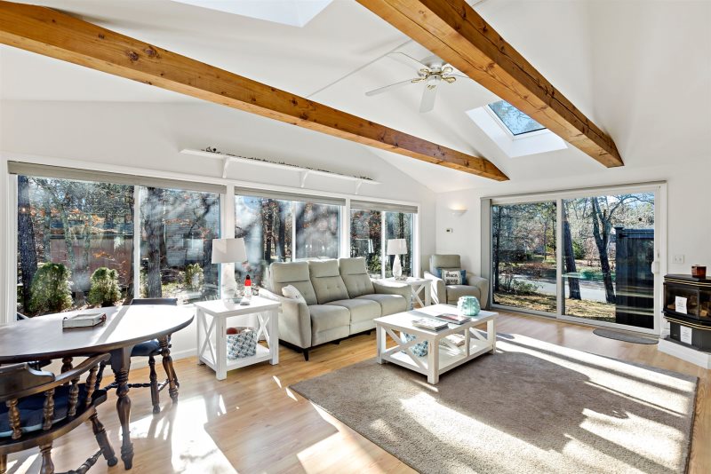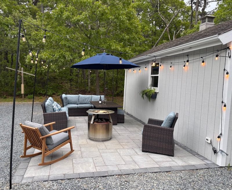 Downstairs, a second living area adds major flexibility, think movie nights, a kid friendly hangout zone, or a quieter spot for reading and puzzles. Sliding doors open to the yard, making it easy to drift outside to the patio. Outside is where Eastham summers shine. The patio is styled for long evenings with string lights, comfortable seating, and a fire pit, a favorite setup for s’mores, stargazing, and post beach conversation. Location wise, you’re in a great position for classic Outer Cape exploring, with easy access to the Cape Cod Rail Trail, beaches, and shopping in Eastham.